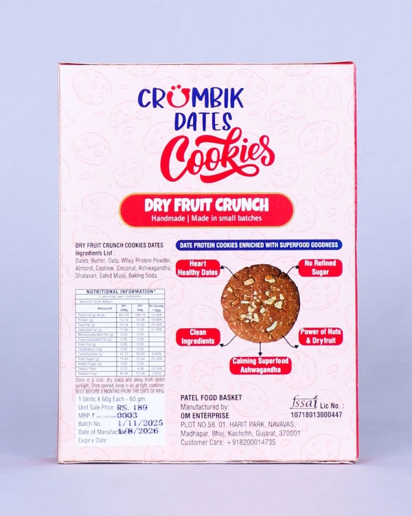 Savor the perfect blend of taste and texture with our Dry Fruit Crunch Cookies, generously packed with premium dry fruits for a truly satisfying bite. Each cookie is baked to perfection, offering a delightful crunch and a naturally rich, nutty flavor that lingers.
