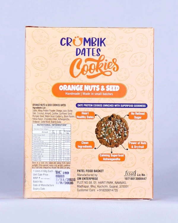 Indulge in the refreshing zest of orange blended with the wholesome crunch of premium nuts and seeds. Our Orange Nuts & Seed Cookies are baked to perfection, offering a delightful balance of citrus freshness and natural nuttiness in every bite. Made with carefully selected ingredients, these cookies are rich in texture, lightly sweet, and irresistibly aromatic.